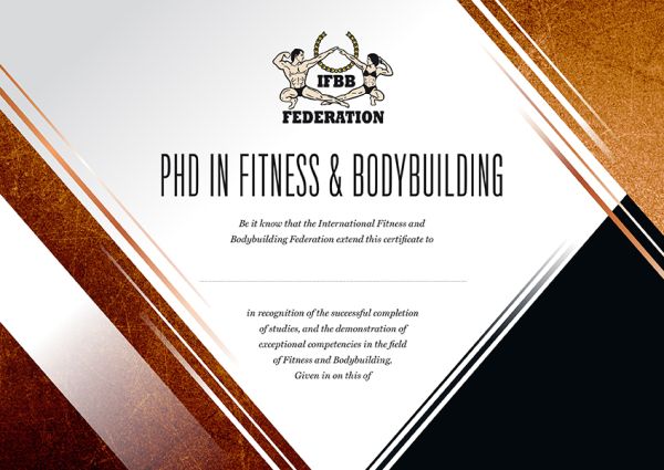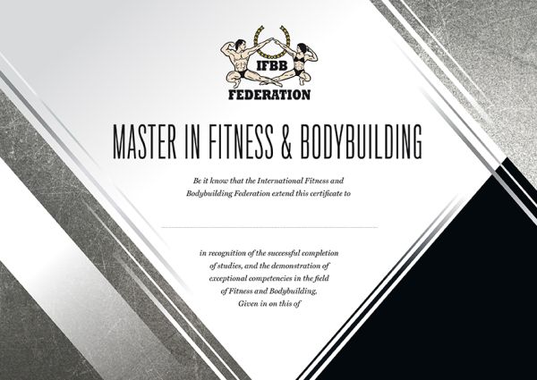 IFBB College Master’s Certificate. (Die Lieferung des Diploms kostet 100€ + Versandgebühren.)
